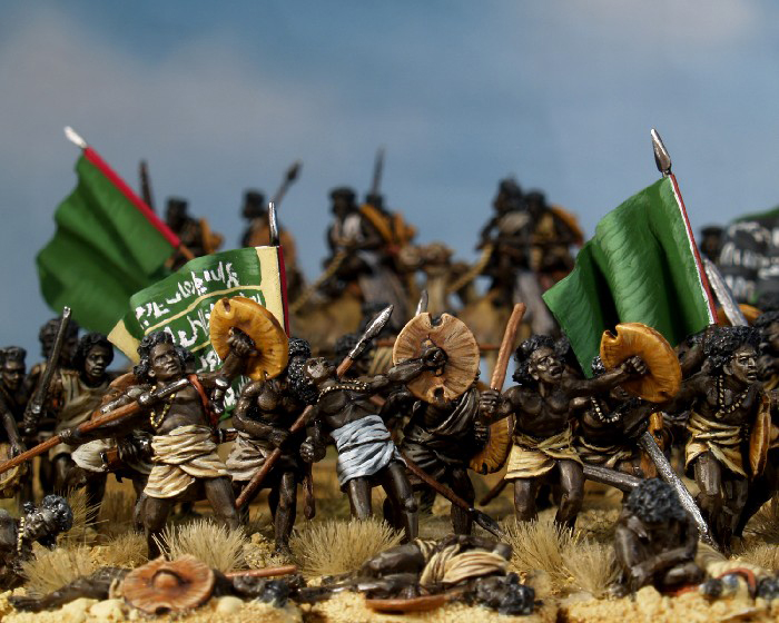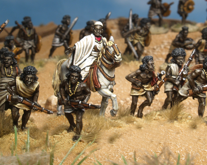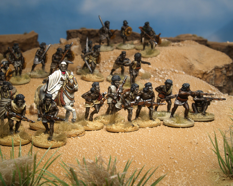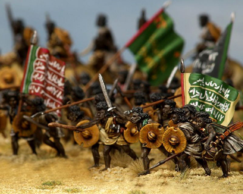 In puncto Beja – Miniaturen wird man im Maßstab 28 mm reichlich verwöhnt. Es gibt zum einen eine ganze Reihe Hersteller, wie Perry Miniaturen, Old Glory und Castaway Arts, die eine Figurenrange zu diesem Thema im Angebot haben und zum anderen sind die angebotenen Miniaturen zudem sehr hochwertig modelliert.