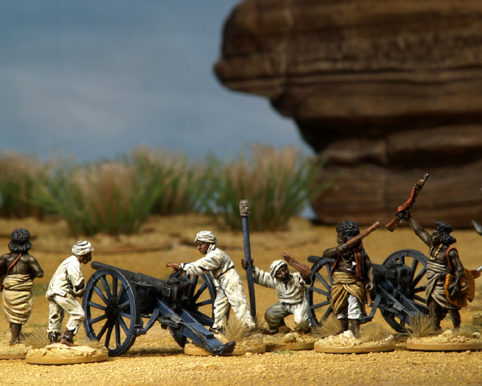 Die mit Abstand größte Vielfalt erhält man bei Perry Miniatures. Neben Osman Digna, in berittener Variante, sind nicht weniger als 60 verschiedene Zinnfiguren zu Fuß und 6 verschiedene Kamelreiter erhältlich. Zusätzlich gibt es ein sehr schönes Set mit gefangenen Ägyptern, die unter Aufsicht eines Beja ein Geschütz bedienen müssen. Neben diesen Sets aus Zinn ist außerdem ein Plastikfigurenset mit 40 Figuren erschienen. Was will man mehr!