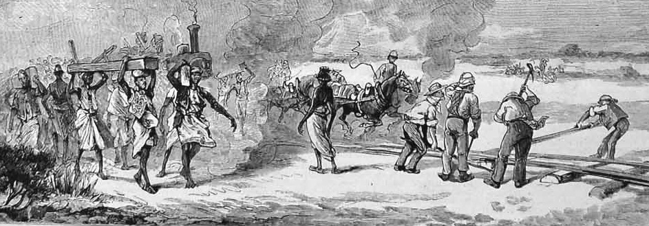 Dafür wurde ein Zug mit Baumaterial für jeweils eine Achtelmeile beladen und bis zum Ende der bereits fertig gestellten Strecke gefahren. Hier wurden die Schwellen auf von 2 Eseln gezogene Holzkarren umgeladen, zu ihrer Position transportiert und schließlich von den Coolies ausgelegt. Die Schienen wurden an Ketten gehängt und mit Pferden der Royal Horse Artillry nach vorne gezogen, wo sie dann auf die Schwellen gelegt, verbunden und mit Nägeln von den Navvies fixiert wurden. Zum Schluss füllten die Coolies die Zwischenräume mit Geröll und Schotter. Die Werkzeuge und das kleinere Material, wie Nägel, wurden auf einer Lore aufbewahrt, die mit dem voranschreiten der Arbeiten vorwärts gezogen wurde. Jede 5 Meilen wurde an der einspurigen Bahnlinie eine Ausweichstelle eingerichtet, an der die Züge sich gegenseitig passieren konnten.