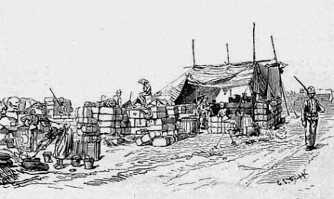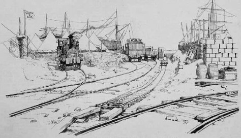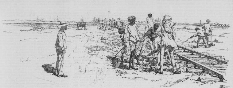 Die eigentlichen Arbeiten an der Bahnstrecke begannen am 16. März, wurden aber durch das mühsame entladen des Materials und die militärischen Operationen verzögert. Die Royal Engineers bauten zunächst eine eigene 18-Inch-Spur Bahn, welche den Nachschub in die Stadt und die umliegenden Militärlager sicherstellen sollte. Die Bahngleise führten von der Quarantine Insel über einen Damm, welcher ebenfalls neu angelegt wurde, zum Festland. Es gab für diese Strecke zwei Zugmaschinen, die von den Einheimischen „Work“ und „No Good“ genannt wurden. Die letztgenannte hatte die Angewohnheit aus den Gleisen zu springen.