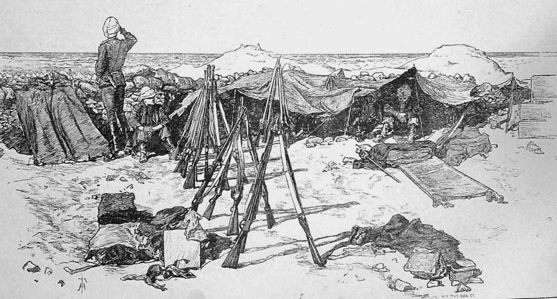 Die neu eingetroffenen Australischen Truppen, sowie Einheiten der Guards wurden eingesetzt, um die Arbeiten zu sichern und den Untergrund für die Schienenleger vorzubereiten. Es war geplant, dass eine Reihe von befestigten Blockhäusern an lang der Bahnlinie errichtet werden sollte. Zwischen Suakin und Handoub wurde das erste Blockhaus, auch Station No. 1 genannt, gebaut und mit Leutnant Haggard von den Kings (Shropshire) Light Infantry und 30 Soldaten besetzt. Unter den dort stationierten Männern waren 5 Lanzenreiter, die zur Aufklärung eingesetzt wurden. Die Station bestand aus einem Blockhaus und einem hölzernen Turm, die von einer dichten Dornenhecke umgeben waren.