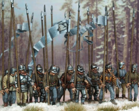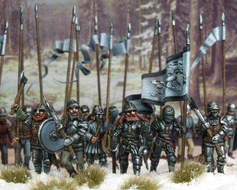 Auf dem ersten und letzten Bild ist Jon Umber, das Oberhaupt des Hauses Umber zu sehen (mitte). Umber ist ein Verbündeter des Hauses Stark. Die restlichen Figuren zeigen Infanterie, Bannerträger und die Fahnenwache des Hauses Stark. In Arbeit sind jetzt noch einige Bogenschützen und eine kleine Kommando-Truppe mit dem Königsmörder Jamie Lannister.
