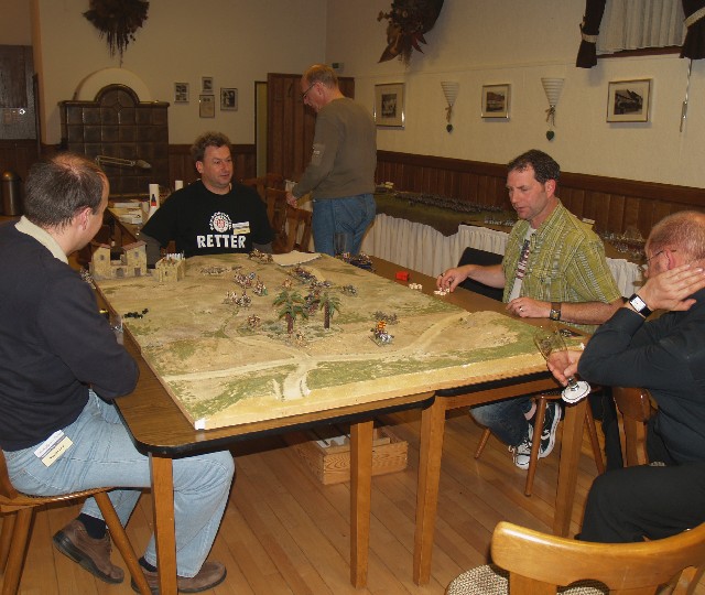 Frank Germershaus stellte seine tolle neue Auenland-Spielplatte vor und es gab eine sehr unterhaltsame Schlacht um Wasserau.