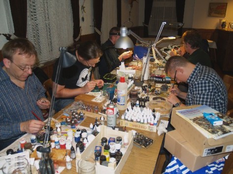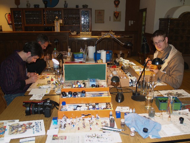 Das alljährlich stattfinde Symposium ist eine Art Forentreffen der Plattform „Modellfiguren Online“. Seit nunmehr 11 Jahren pilgere ich Anfang November nach Lippoldshausen ins Gasthaus zu Brücke. Dort finden sich Sammler, Maler, Modellbauer, Modelleure, Wargamer und historisch Interessierte aus ganz Deutschland (diese Jahr sogar auch aus dem Ausland) ein. Neben den vielen Gesprächen und Diskussionen gibt es natürlich auch einen Ausstellungsbereich, Gruppen die malen und modellieren, Spielltische verschiedener Wargaming-Systeme und Workshops in denen man praktische Erfahrungen sammeln kann. Im Mittelpunkt stehen Vorträge und Vorführungen zu ganz unterschiedlichen Themen. Diese Treffen bietet wirklich jedem etwas, der sich für Modellfiguren interessiert. Wer Interesse an einer Teilnahme hat, kann sich gern im Forum Modellfiguren Online informieren: