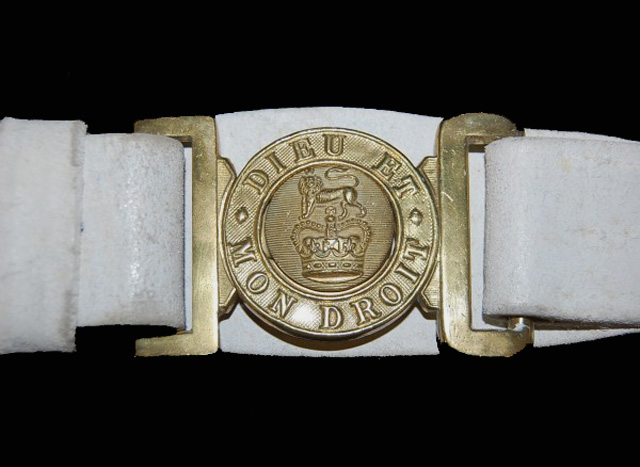 Das Lederzeug war naturfarben und auf der Außenseite für die Infanterie mit Hilfe von Pfeifenton weiß gefärbt. Die Schützenregimenter hatten schwarzes Lederzeug, braun für die Royal Artillerie, sowie für alle weiteren Truppengattungen, die braunes Lederzeug verwendeten (z.B. die reitende Infanterie).