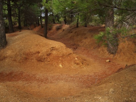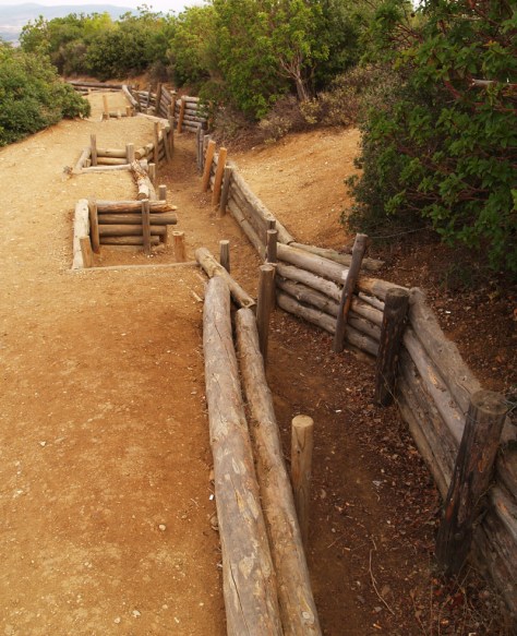 Hier die noch deutlich sichbaren Gräben, die den gesamten Hügelkamm durchziehen