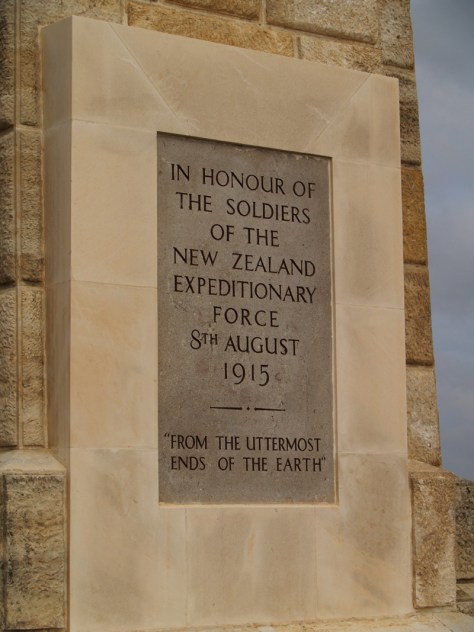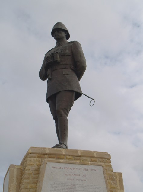 Eine Straße windet sich die Hügel im Inland hinauf. Viele der Grabenanlagen auf den Hügeln sind noch deutlich sichtbar, einige sind auch rekonstruiert worden, d.h. mit Holz verkleidet. An lang der Straße stößt man immer wieder auf Ehrenmale und Friedhöfe der verschiedenen Schlachtfelder und Einheiten. Nächster Halt war dann Lone Pine, wo ein Friedhof angelegt ist, auf dem man tatsächlich eine einsame Pinie finden kann. Schließlich erreicht man Chunuk Bair. Hier sind zahlreiche Denkmäler zu sehen und ein Großteil der ehemaligen Stellungen zu erkunden. Der Ausblick ist großartig. Die Landungsstrände und das komplette Umland sind von hier aus zu sehen. Vor den Denkmälern, am Parkplatz findet man auch einige Stände von Souvenirhändlern, bei denen ich eine dieser seltsamen türkischen Kopfbedeckungen gekauft habe. Darauf die Inschrift Canakkale, dem türkischen Namen des Feldzuges…na ja, hübsch ist was anderes.