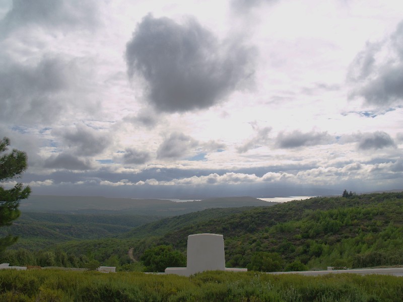 Der Blick von Chunuk Bair nach Norden. Im Hintergrund ist die Meerenge der Dardanellen zu sehen
