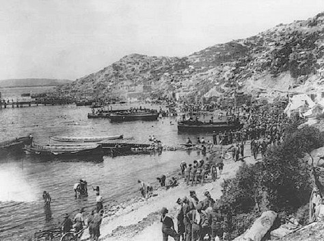 Die beiden oberen Fotos zeigen die ANZAC Bucht im Jahre 1915