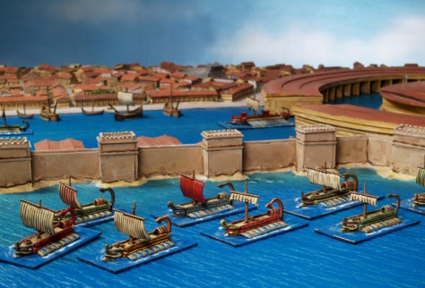 Seitdem ich die Rekonstruktion des Kriegshafens in dem Buch Greece on Rome at War von Peter Connolly gesehen hatte, juckte es mich in den Finger, dieses architektonische Meisterwerk in ein TableTop – Spiel einzubinden.