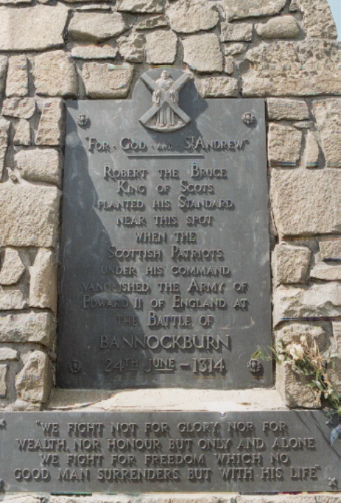 Die genaue Lage des Schlachtfeldes von Bannockburn ist bis heute nicht bekannt. Eine monumentale Gedenkstätte mit Reiterstandbild und Besucherzentrum befindet sich rund 2 Kilometer südlich von Stirling. Hier werden in einer schönen Ausstellung die Ereignisse von 1314 dargestellt. Besonderer Clou der Ausstellung sind einige Helme, Kettenhemden und Kleidungsstücke aus dieser Zeit, die man selbst anprobieren kann.