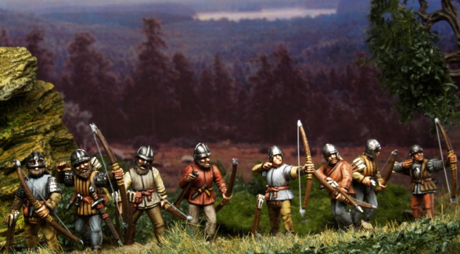 Hier nun die erste Armeeliste und auch ein paar neue Figuren für das Haus STARK. Diese und auch die folgenden Armeelisten werden zunächst nur eine besondere Einheit und je zwei Helden enthalten. Darüber hinaus enthält jede Armee aber auch einige individuelle Eigenschaften und Waffen in den Kerneinheiten. Bei diesen neue Eigenschaften und Waffen versuche ich jedoch immer einen Vorteil durch einen Nachteil auszugleichen. Als Beispiel will ich hier die Levies des Hauses Stark erläutern. Ich sehe das Haus Stark zwar als mächtiges Geschlecht des Nordens, die Ausbildung und Ausrüstung seiner Truppen kann jedoch nicht mit denen anderer großer Häuser mithalten. Die Masse der Truppen besteht also eher aus Levies. Robb als König im Norden erhält deshalb die Fähigkeit, diese Truppen besser kontrollieren zu können (durch zusätzliche SAGA-Würfel). Im Gegenzug erhält er jedoch nur 2, statt der üblichen 3 SAGA-Würfel für Helden. Die Levies selbst können zwischen 2 verschiedenen Waffenoptionen wählen. Die Pike, als Auswahl in der Armeeliste, wird auch hin und wieder in den Büchern erwähnt. Ich sehe die Pike jedoch nicht in den Händen erfahrender Krieger, da es sich eher um eine defensive Waffe handelt. Gegen Reiter ist diese Waffe äußerst effektiv. Die Levies erhalten 1 Nahkampfwürfel pro Figur, aber hier entfällt die Fähigkeit zum Schießen. Die zweite Option der Levies ist der Bogen, der hier nicht näher erläutert werden muss, da es sich um die Standartwaffe aus dem Hauptregelwerk handelt.