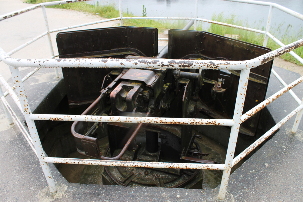 Auf der Ostseite der Brücke war südlich der Straße eine 50mm KwK 39 L/60 (mit Mündungsbremse) mit Schutzschild und Behelfssockellafette in Ringstellung installiert. Diese KwK (Kampfwagenkanone) war in den Jahren 1941-42 die Hauptwaffe des Panzer III. Da die Waffenstärke gegen die T-34 und KV-1 Panzer der Sowjetunion nicht mehr ausreichend war, wurden im Zeitraum 1942 bis 1944 über 1.800 dieser nicht mehr zeitgemäßen Geschützrohe in den Verteidigungsanlagen des Atlantikwalls verbaut.