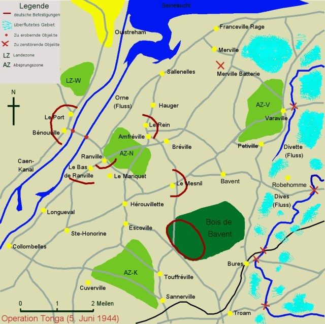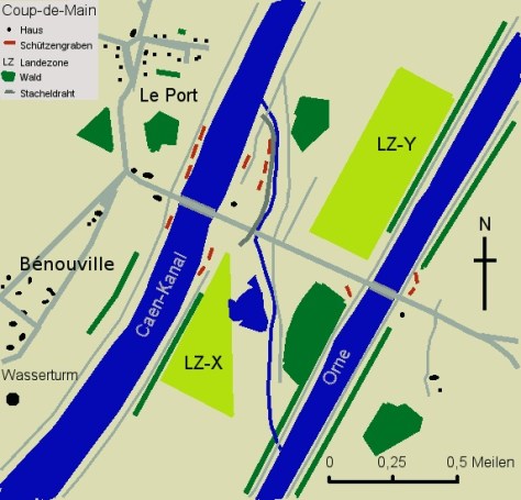 Der erste Angriff sollte durch 181 Soldaten der ‚D‘ Company, 2nd (Airborne) Battalion, Oxfordshire and Buckinghamshire Light Infantry (Spitzname: Ox and Bucks) unter Führung von Major John Howard ausgeführt werden. Die Männer sollten in 6 Lastensegler, 3 für jeden Landeabschnitt (Landezonen X und Y) der beiden Brücken, ins Zielgebiet gebracht werden.