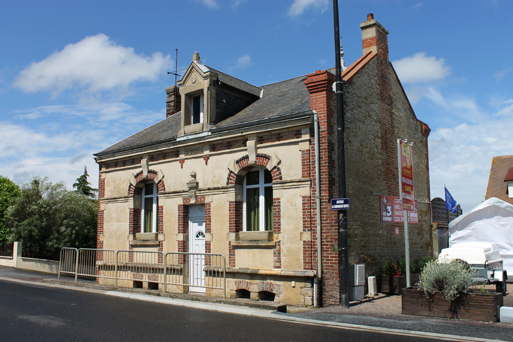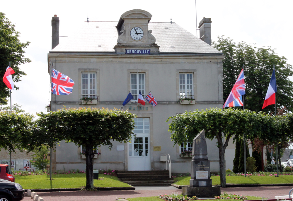 Das markante Rathhaus von Benouville, mit der schönen Uhr im Giebel, steht unmittelbar an der T-Kreuzung, an der Straße die nach Benouville führt. Vor dem Gebäude befand sich ein kleiner Platz mit einem Denkmal. Das Rathhaus ist noch vollständig erhalten, nur das Denkmal wurde während der Kampfhanlungen stark beschädigt. Das Rathaus nimmt für sich in Anspruch, das erste befreite Rathaus in Frankreich zu sein.