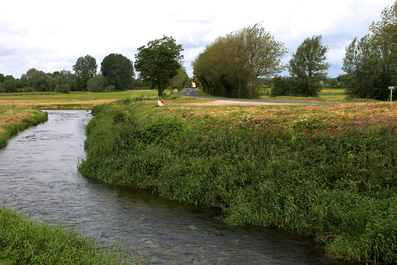 Unmittelbar nach der Brücke beginnt der Dammweg, der zunächst leicht nach rechts abknickt bevor er schnurgerade bis nach Cauquigny verläuft.