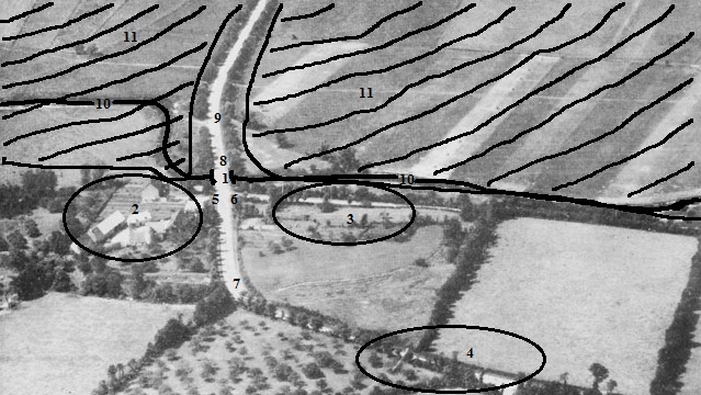 Auf diesem Bild habe ich die Stellungen der Amerikaner an der Brücke eingezeichnet: