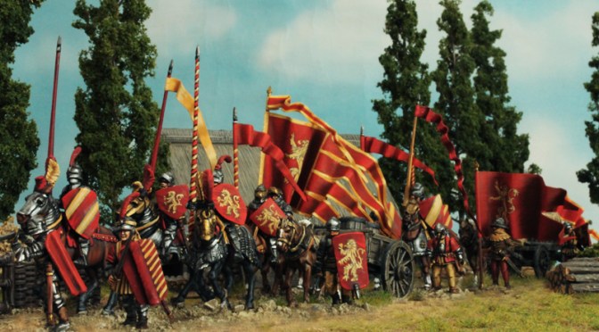 die Infanteristen der Lannister sind allesamt Plastik-Figuren von Perry-Miniatures (Rosenkriege). Diese Sets lassen sich auch untereinander gut mischen. Man kann aber auch ein paar der Zinnfiguren untermischen. Ich habe zum Beispiel gerade ein paar der schwer gerüsteten Krieger mit Zweihandwaffe auf dem Maltisch…das soll die Königsgarde werden.