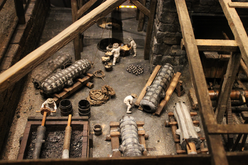 In der Sonderausstellung „Artillerie“ im Erdgeschoss des Museums wird die Funktion und der Ladevorgang von Geschützen erläutert.