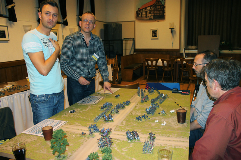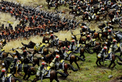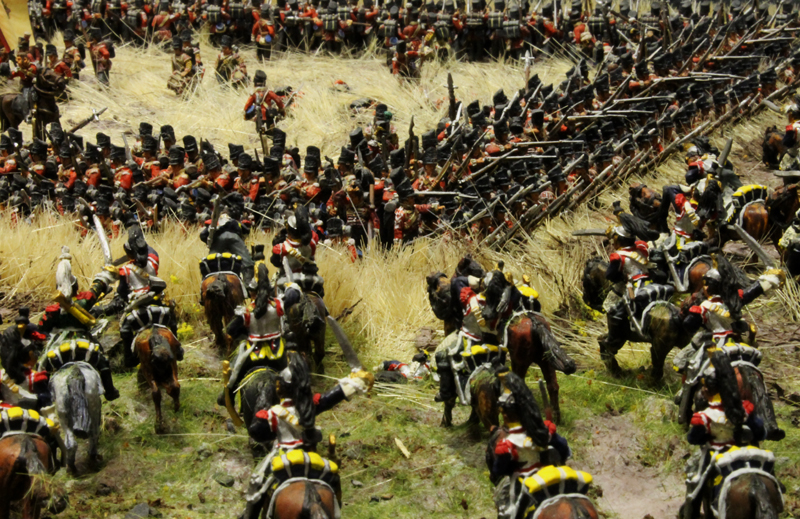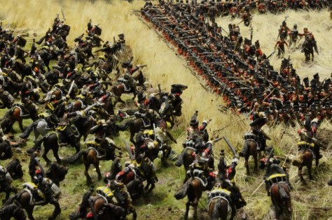 Extrem eindrucksvoll war natürlich das britische Karree von Dirk. In diesem schönen Diorama, war ein Angriff französischer Kürassiere bei Waterloo zu sehen. Die Anzahl der Truppen war im Verhältnis 1:1 dargestellt… chapeau!