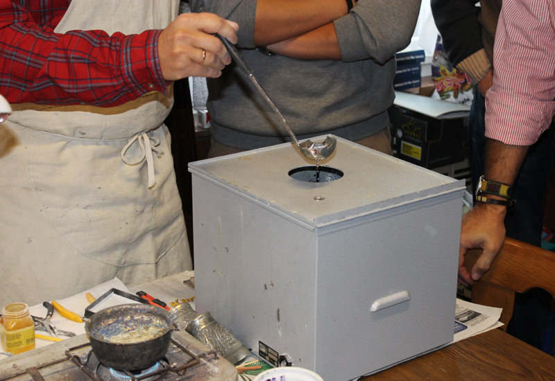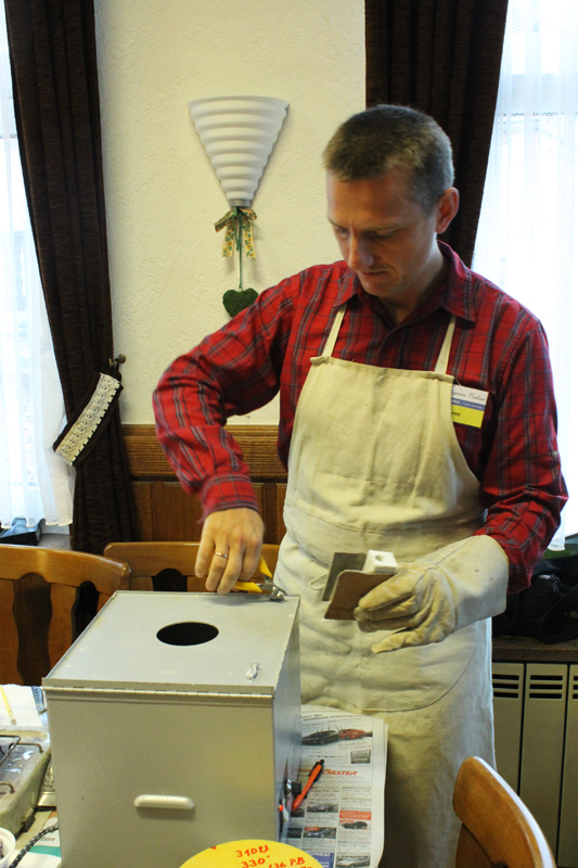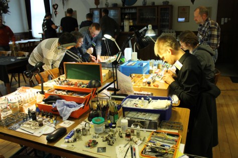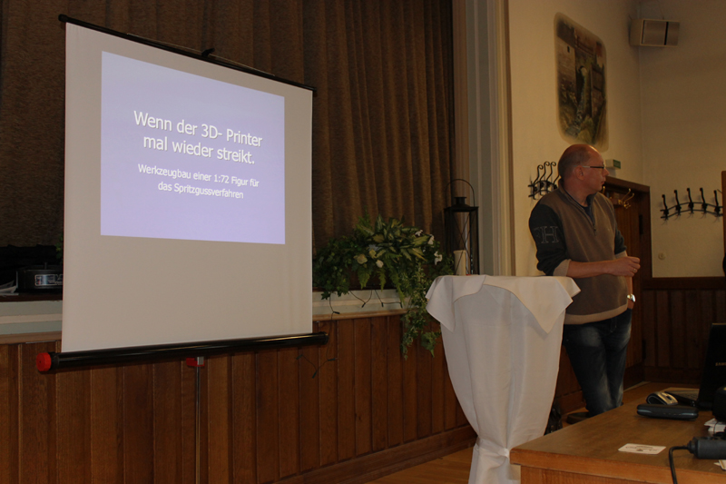 Am Sonntagvormittag legte Andreas T. noch einen drauf. Wir erfuhren, dass der Junge eine eigene Fabrik zu Hause hat! Vom Pantografen, über die Spritzgussmaschine bis zur Drehbank. Erläutert wurden die Funktion der Maschinen und die Möglichkeiten zur Fertigung von Plastikfiguren. Vor allem die Herstellung der Aluminiumgussform war ein zentrales Thema.