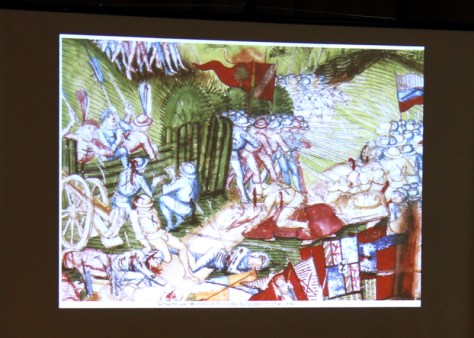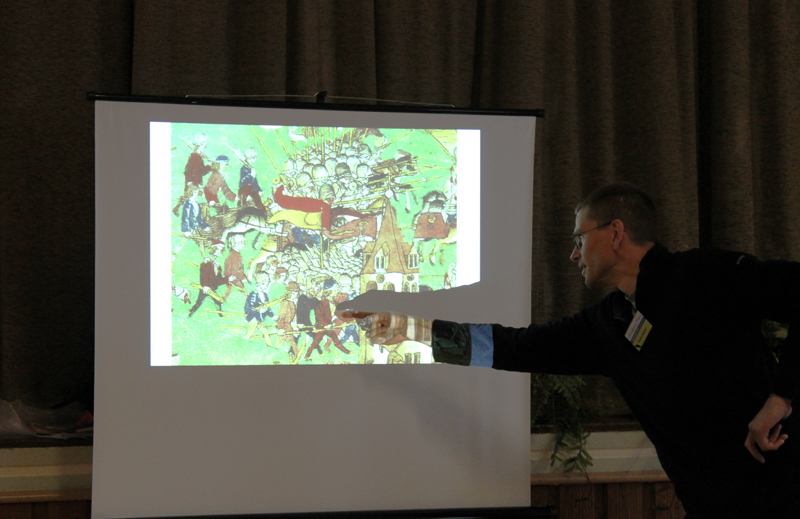 Frank Z. gab uns eine Einführung in das Thema der Kleidung und Panzerung zur Zeit der Burgunder-Kriege. Hier wurde vor allem historische Abbildungen erläutert und erklärt, wie diese zu bewerten sind.