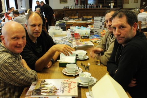 Nunja Drama ist relativ. Da der Saal umsonst ist und die Wirtsleute mit der Tagespauschale (für die wir im übrigen richtig was geboten bekommen – Mittagssuppe, belegte Brote, Softdrinks) abgegolten wird, kommt es bei den anderen Teilnehmern nicht besonders gut an, wenn dann die Tagesgäste ihre mitgebrachten Seltersflaschen und Butterbrote mitbringen. Verwechselt diese Veranstaltung nicht mit irgendeiner Messe, wo man seine Modelle hinstellt.