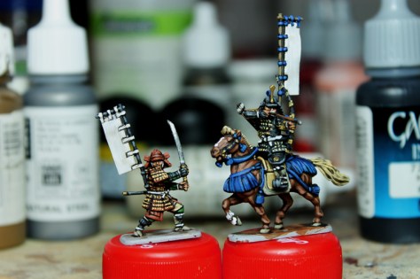 Die meisten versiegeln die Miniatur abschließend mit einem Mattlack. Da ich bereits viele schlechte Erfahrungen mit Mattlack gemacht habe, verzichte ich auf diesen Schritt. Die Erfahrung hat gezeigt, dass die Lackierung bei den sehr leichten Weichplastikfiguren auch nicht nötig ist. Selbst wenn die Figur zu Boden fällt, werden keine Ecken, wie bei Zinnfiguren, abgestoßen. Es ist vielmehr so, dass die vielen Farbschichten (Grundierung, Grundton, Wash und Aufhellungen), einen guten Schutz bilden und nur durch starkes biegen bzw. reiben abgelöst werden können. Das würde aber auch ein zusätzlicher Lack nicht ändern.