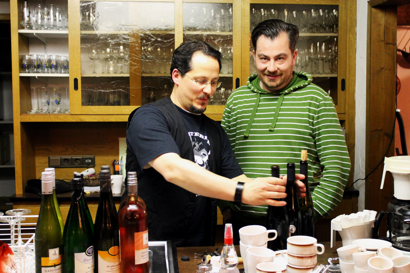 Nach der Begrüßung am Freitag und einem extrem leckeren Abendessen, ging es dann auch gleich in die vollen…Weinprobe!!! Da in der Pfalz nun einmal der veredelte Traubensaft große Tradition hat und Jürgen in einem Weinfass aufgewachsen ist, bot es sich an, die ganze Sache mal zu vertiefen. Nach lockeren 5 Stunden schlürfen, über die Zunge rollen und trinken, hatten wir schließlich die Grundbegriffe erfasst und wussten schließlich, wie die Pälzer (ja, das spricht sich ohne F) ihre Mußbacher Eselshaut fachgerecht im Dubbeglas die Kehle runterspülen.