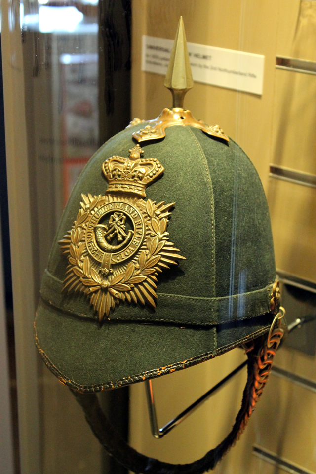 Im Sudan und Ägypten Spannend für mich waren einige sehr schöne Ausstellungsstücke aus dem Sudanfeldzug von 1896 bis 1898: Full Service Helmet, 1863 bis 1893. Foreign Service Helmet. Der rote Puggaree wurde verwendet, um den rot über weißen Federbusch zu symbolisieren. Der Helm wurde in Indien, im Sudan und in Südafrika getragen.Geschichte