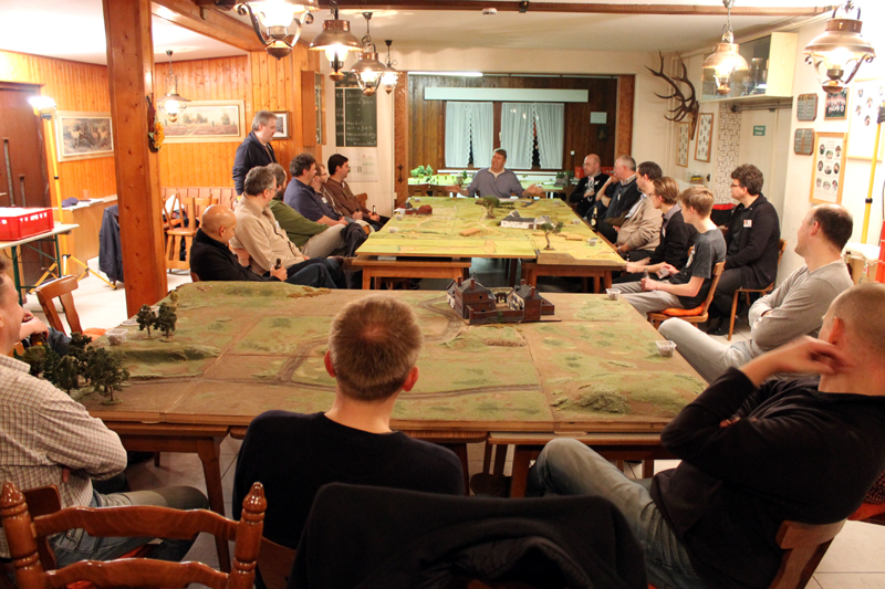 Am ersten Abend gab es nach Aufbau des Spielfeldes eine kleine Lagebesprechung und einen Vortrag über die Strategie und Taktik der damaligen Zeit. Hier prophezeite uns Frank Möller bereits das, was sich im Ende bewahrheiten sollte…es gewinnt, wer am Ende noch über Reserven verfügt.