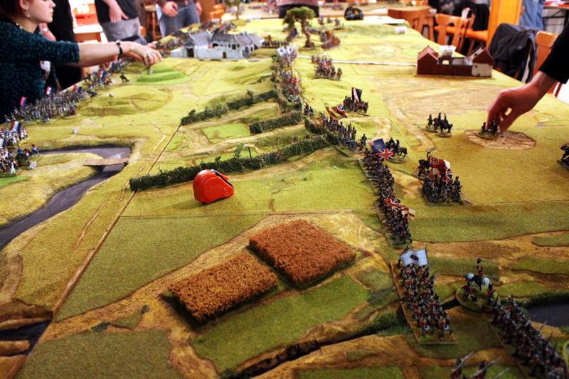 Am vergangenen Wochenende habe ich zum ersten Mal an einem sehr großen, komplexen TableTop Spiel teilgenommen. Mit 20 Personen wurde an drei großen, zusammenhängenden Spieltischen die Schlacht von Waterloo erneut geschlagen. Ich hatte mir vorgenommen, das Wochenende als eine Art Experiment zu nutzen. Ich wollte feststellen, wie so eine große Schlacht funktioniert. Mein Plan war, während des Spieltages unter anderem darauf achten, wie ich selbst als 2. Kommandeur (Uxbridge) agiere, wie das Zusammenspiel zwischen den einzelnen Abschnitten abläuft, welche Rolle die Reserve spielt und welche Stärken und Schwächen das Regelwerk hat.