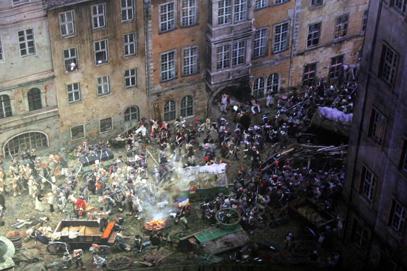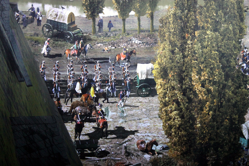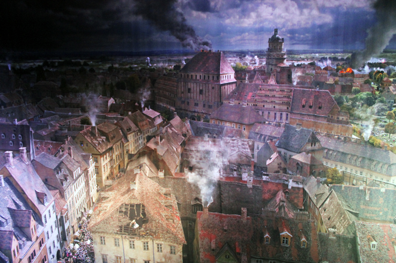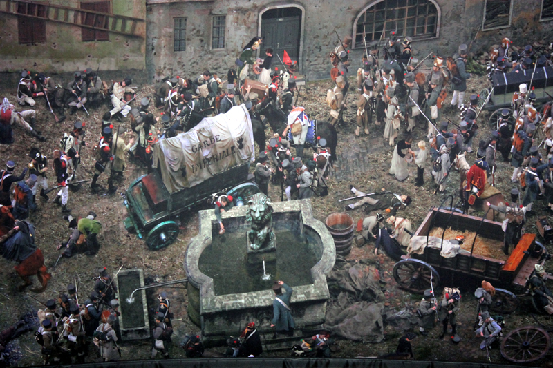 Am eindrücklichsten sind zweifellos die Ausblicke auf den Kirchplatz gleich unterhalb des Aussichtsturms. Hier drängen sich die Massen der flüchtenden Französischen Armee und in den Seitengassen liegen die Verwundeten.