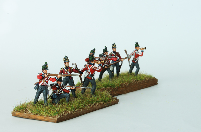 Diese Plänkler-Basen sind eine wilde Mischung verschiedener Hersteller und einiger einfacher Umbauten. Zum Einsatz kamen Figuren der Firmen Esci und A call to Arms.