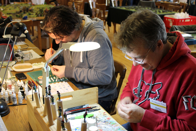 An den mittlerweile fest etablierten Mal- und Modelliertischen wurde fleißig der Pinsel geschwungen und Modelliermasse verknetet. Das Ganze ist auch immer ein guter Einblick in die zukünftigen Projekte der Symposiums-Teilnehmer.