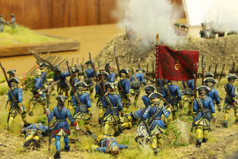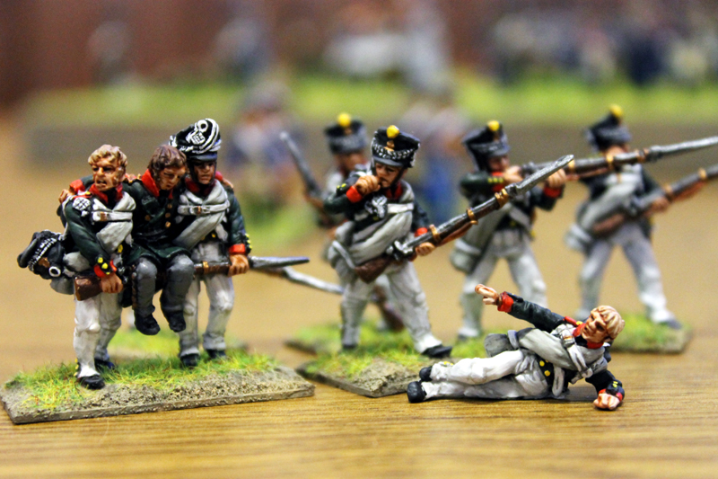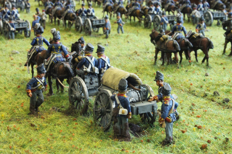 Fast schon traditionell hatte Dirk eine 1 zu 1 Aufstellung der napoleonischen Kriege im Maßstab 28mm angefertigt. In diesem Jahr gab es eine komplette Batterie englischer Fuß-Artillerie zu bestaunen. Extrem eindrucksvoll!