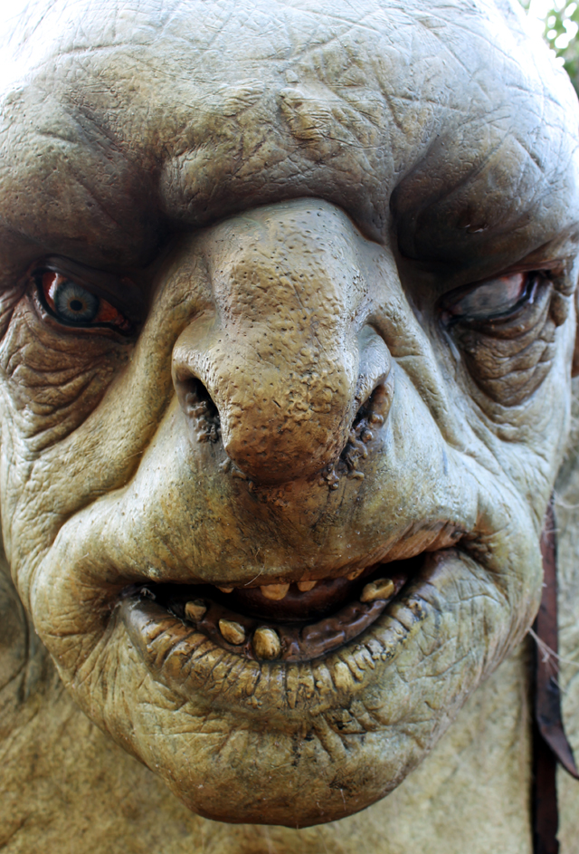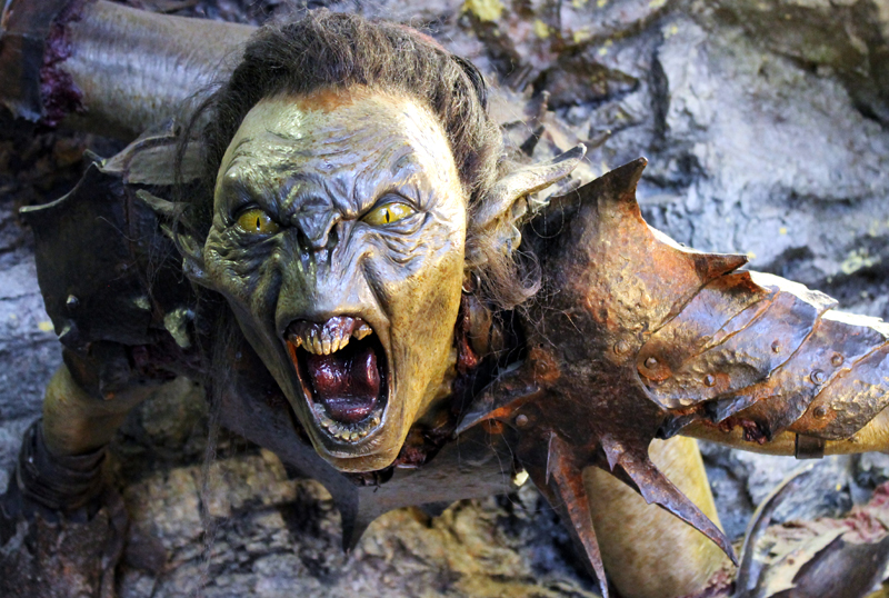 Durch Fenster in den Wänden kann man einen Blick in „gefährliche“ Arbeitsbereiche werfen, wie die Schmiede von Peter Lyon, der hier die großartigen Schwerter angefertigt hat. Ein Raum weiter stehen riesige Fräsmaschinen, die Requisiten aus Aluminium schneiden und ein ausgemusterter Roboter der Autoindustrie, der 3D-Objekte produziert. Es gibt natürlich auch verschiedene 3D Drucker und Computer an den gezeigt wird, wie mit Photoshop großartige Bilder „gemalt“ werden. In der Abteilung für Miniaturen wurden zum Zeitpunkt meines Besuches gerade Palmen in unterschiedlichen Maßstäben gebaut und nebenan zeigte ein Modelleur mit welchen unterschiedlichen Materialien er die unglaublichsten Miniaturen kreiert. Unser Tourguide war für die Produktion der Silikon-Masken und Prothesen zuständig und so erfuhren wir auch eine ganze Menge zu diesem Thema.