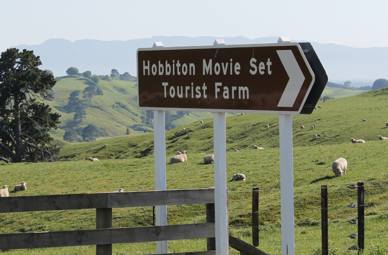 Vor unserem Besuch des Hobbingen-Filmsets kamen wir durch das kleine Städtchen Matamata. Hier wird man von einem Schild in Hobbingen begrüßt und auch das Informationsgebäude ist ganz im Auenland-Stil gehalten. Allerdings ist der Ort doch ziemlich weit von der eigentlichen Farm entfernt und so gibt es eigentlich keine Notwendigkeit hier länger zu verweilen. Allerdings ist der Weg zur Farm nicht ausgeschildert. Vermutlich steckt Absicht dahinter, denn so suchen die meisten Besucher doch fragend die Tourist-Information auf. Wenn man dann schon mal auf der Straße ist, macht man meist doch noch einen kleinen Bummel und geht sogar in eines der Restaurants. Na ja, es sei dem Städtchen gegönnt 😉