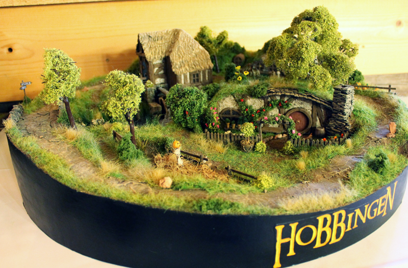 Sehr gut gefiel mir auch das Rahmenprogramm der Veranstaltung. Es gab einen schönen Mal- und Fotoworkshop von Daniel, der auch seine unglaublichen Figuren ausgestellt hatte. Im Ausstellungsbereich zeigten außerdem viele begnadete Maler und Modellbauer ihre Kunstwerke. Sehr Stimmungsvoll war die kleine „Hobbingen“-Platte von Thomas. Kaum zu übersehen war das gigantische „Sandkasten“-Diorama der Truppe um Peter, welches das Lager der Rohirrim vor ihrem „großen Ritt“ zeigte. Die Szene befindet sich immer noch im „WIP“ Status und soll am Ende einmal 6.000 Reiter beinhalten! Am Samstagabend rundeten noch zwei Vorträge „Beowulf“ von Gotzmog und eine Diavortag über die Herr-der-Ringe Schauplätze in Neuseeland (von mir selbst) ab.