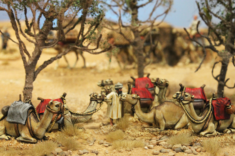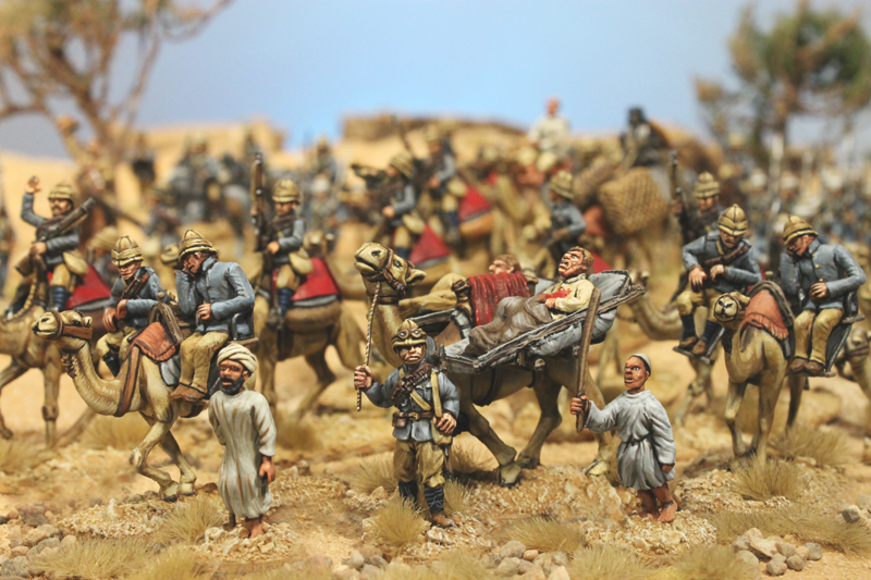 Seit der Salute 2013 liegen bei mir dutzende Kamele und Treiber für meine geplante Transportkarawane des Camel Corps herum. Nun habe ich zumindest schon einmal die Hälfte der Figuren bemalen können. Neben den Kamelen des Medical Staff Corps, auf denen Verwundete transportiert worden, sind vor allem die Packkamele des Commissariat and Transport Corps fertiggestellt.