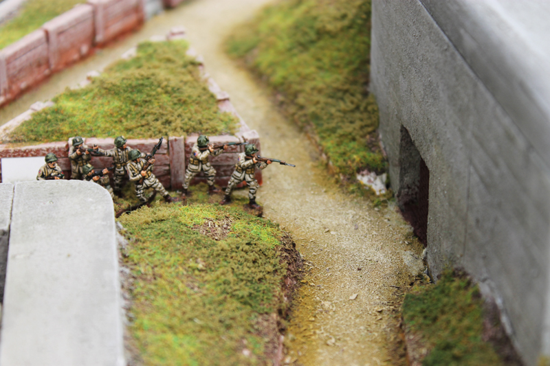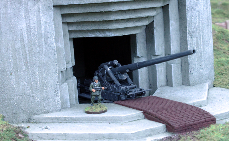 Bei dieser Gelegenheit konnte ich auch endlich eine Reihe von Spielen nachholen, die bisher an mir vorbeigegangen waren. Den Anfang machte „Die Kanonen von Marcouf“, ein Normandie Szenario von Rusus, wofür er in unglaublicher Detailarbeit diese berühmte Marineküsten-Batterie nachgebaut hatte. Im Szenario ging es darum, die Geschütze der Batterie auszuschalten, bevor diese den vor der Küste liegenden Zerstörer U.S.S Corry versenkt hatten. Gespielt wurde im Maßstab 1/72 und mit den „Victory Decision“ Regeln von Agis Neugebauer. Dieses Spiel war wohl eines der besten Szenarien, die ich je gespielt habe. Es gab jede Menge tolle Optionen, witzige Einfalle und ungewöhnliche Spielmechaniken. Außerdem sah das Ganze einfach nur genial aus. Hut ab!