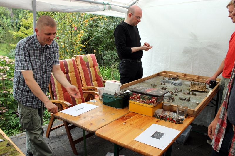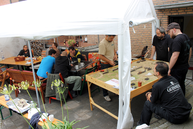 Ich bin soeben aus meinem wohlverdienten TableTop-Urlaub zurück! In guter Tradition fand nämlich auch in diesem Jahr das „Tommy’s Holiday Camp“ (THC) bei Rusus (Thomas) statt. Rusus ist so eine Art TableTop-Multitalent. Neben seinen unglaublichen Geländebau-Fähigkeiten bemalt er auch noch wunderschöne Figuren und ist einer der einfallsreichsten Szenario-Designer in der Szene. Dieses kleine Treffen, man kann es mittlerweile schon als Veranstaltung bezeichnen, findet in den sonnig-warmer Tagen des Jahres statt, da sich ein Großteil unter freien Himmel abspielt. Die ganze Geschichte ist so eine Art privater Club-Urlaub. Man erhält Unterkunft, Vollpension und Entertainment :-)…Paradies on earth! Neben zahlreichen, ganz unterschiedlichen Spielen werden natürlich auch unzählige Diskussionen geführt, Neuigkeiten ausgetauscht und Projekte geplant. An dieser Stelle noch einmal ein DICKES DANKESCHÖN dafür, dass ich wieder dabei sein durfte.