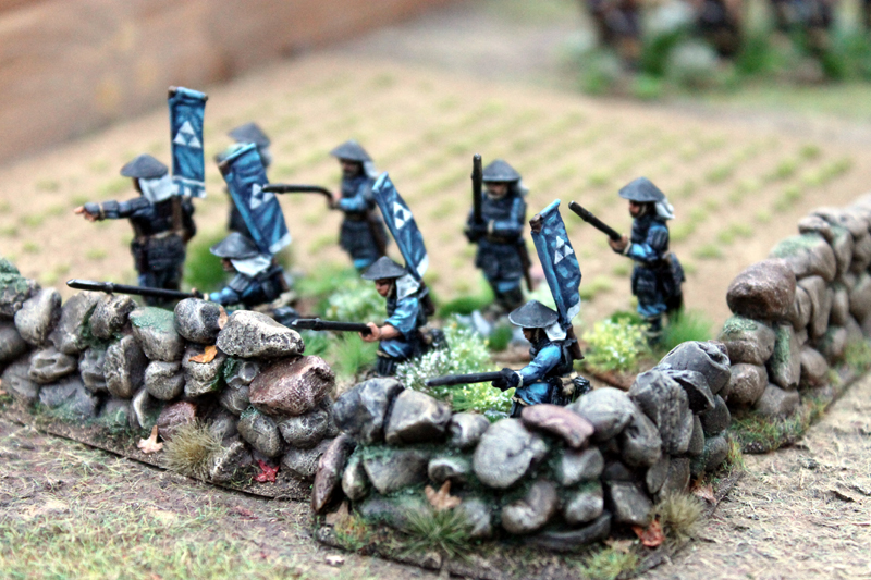 Nach diesem Ereignis folgten erst einmal zwei Partien SAGA-Samurai. Patrick, vielen wohl als „Wraith“ bekannt, hatte schon in der Vergangenheit einige sehr schöne Battleboards zu diesem Thema kreiert und auch bereits eine eindrucksvolle Spielplatte auf der letzten TACTICA präsentiert. Außerdem besitzt er einige großartig bemalte Warbands. Da auch ich das Thema Samurai im Maßstab 28mm schon immer ausbauen wollte, bot sich nun die perfekte Gelegenheit. Ich hatte im Vorwege der Veranstaltung meine rudimentäre Truppe des Ii Clans zu einer 6-Punkte Warband ausgebaut und im Reisegepäck verstaut. Die beiden Testspiele, obwohl ich mich im ersten etwas dämlich angestellt habe, überzeugten mich, das Thema weiter zu verfolgen…mir schwebt da auch schon ein recht epische Szenario vor…doch das ist eine andere Geschichte.