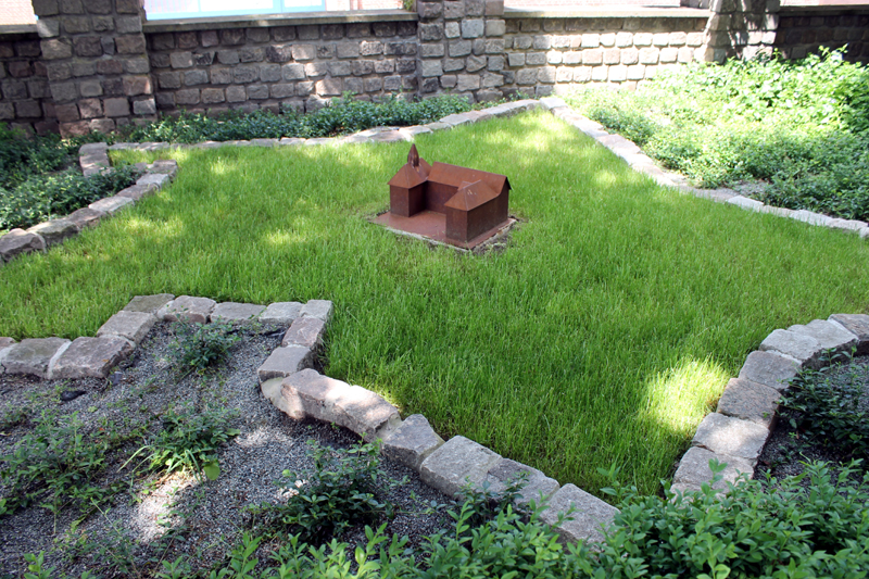 Im Garten des Schlosses findet sich heute dieses originelle Denkmal, welche die Schanzen und das Schloss in der Mitte zeigt.