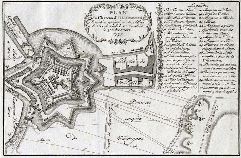 Das Schloß und die Festung Harburg während des 7-jährigen Krieges.