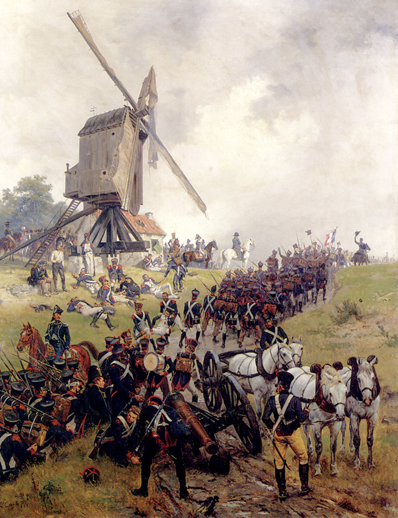 In der kleine Stadt Fleurus, südwestlich des Schlachtfeldes gelegen, hatte Napoleon sein Quartier bezogen. Er war im 1. Stock des Château de la Paix untergebracht. Am Ortsausgang von Fleurus, an der Straße nach Gembloux stand eine turmartige Windmühle, die Moulin Naveau. Das Gebäude war komplett aus Ziegelsteine errichtet und hatte eine umlaufende Galerie aus Holz. Die Pioniere der Garde entfernte auf Befehl Napoleons ein Teil des Daches, um so einen optimalen Beobachtungsplatz zu schaffen. Hier befand sich auch während der Schlacht Napoleon mit seinem Stab und lenkte seine Truppen. Sowohl der Turm der Windmühle, als auch das Château de la Paix sind bis heute erhalten.
