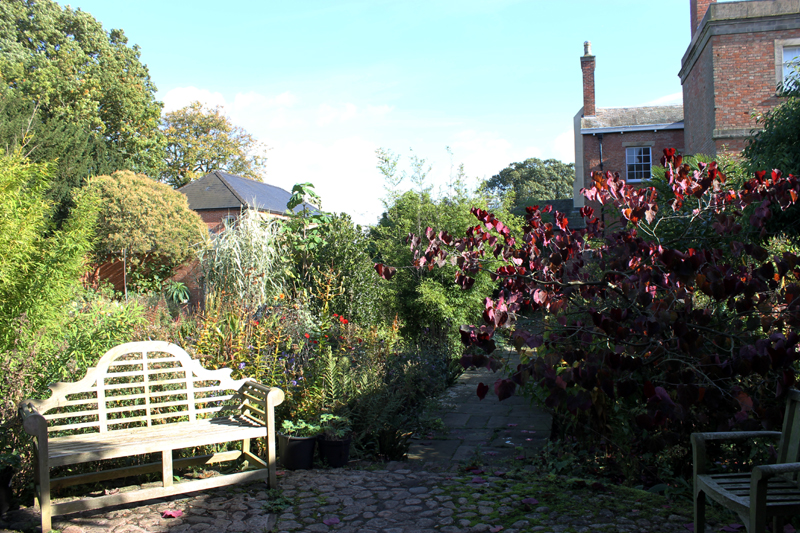 Durch den Garten gelangt man zu den Wirtschaftsgebäuden.