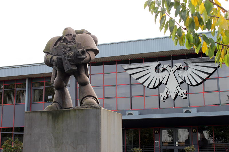 Bevor ich die Ereignisse des dritten Tages beleuchte, noch ein Nachtrag zu Tag zwei des Nottingham Weekends. Mir ist doch tatsächlich der Besuch bei Games Workshop durch die Lappen gegangen! Nach einigen, durch diverse Baustellen bedingten Irrfahrten, stellten wir unseren englischen Miet-Polo auf dem Werksgelände ab. Olli und Johannes wandelten erstmals auf heiligem Boden 🙂 Der Besuch fiel aber nur recht kurz aus, da das „Besucherzentrum“ und die Ausstellung derzeit umgebaut werden. Trotzdem konnte Olli ein paar Souvenirs einsacken und wir einen Rundgang durch die Warhammer World und Bugman’s Bar machen.