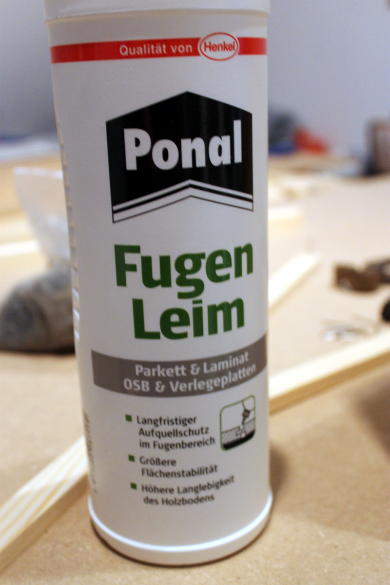 Tipp: Statt des teuren Holzleims, verwende ich den sogenannten Fugenleim. Er kostet nur rund die Hälfte, hat aber die gleichen Eigenschaften (ist also ebenfalls wasserfest).