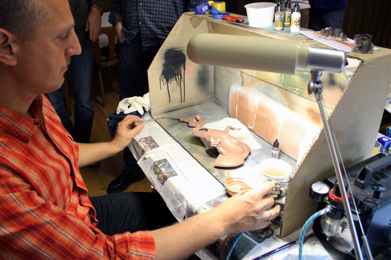 Schöne Fotos, da muss ich auch mal mit. Airbrushen ohne Maske und Abzug ist allerdings ein absolutes no-go, egal wie groß der Raum ist.